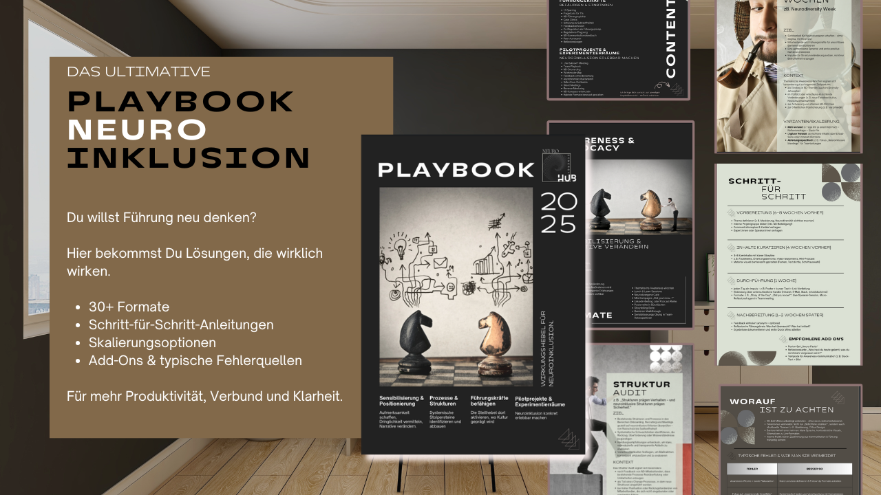 Dieses Playbook bietet Dir mehr als 30+ umsetzbare und praxiserprobte Formate und Tools, um Neuroinklusion zielgerichtet und wirksam in Dein Unternehmen, in Deinen Alltag oder in Deinen Unternehmensprozessen zu verankern.